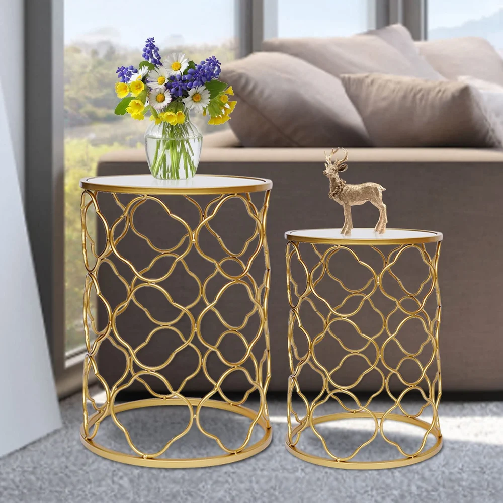 Polis Glass Top And Gold Finish Side Table – Set of 2